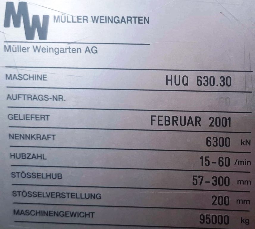 Specifications - Muller Weingarten HUQ 630.30 (ID: 76336)